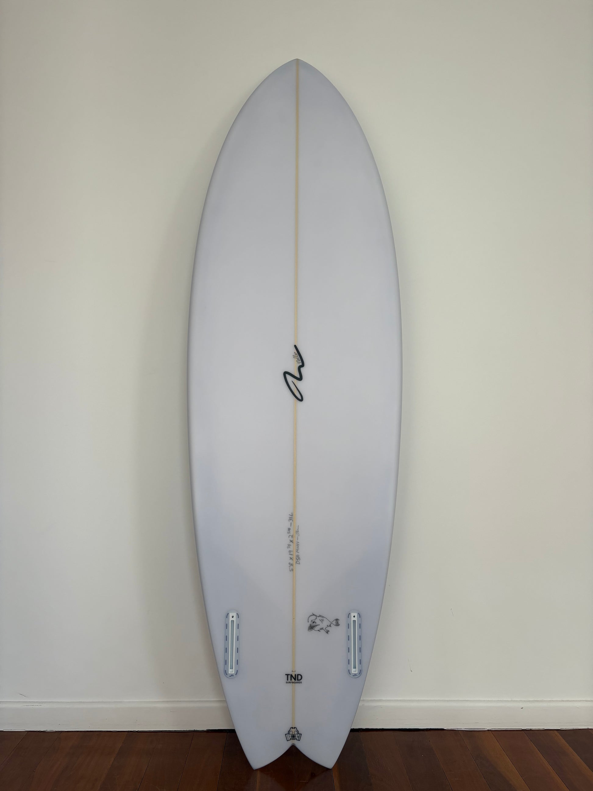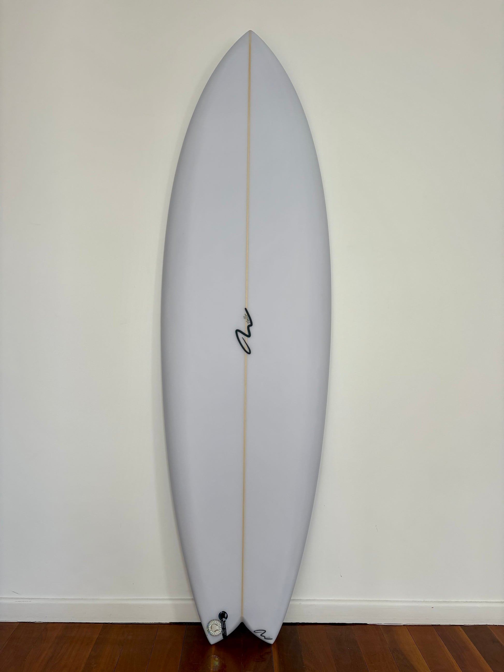 As recommended by Theo, this board performs best with MR twin fins, with the quad fins favouring quad performers or split keels.